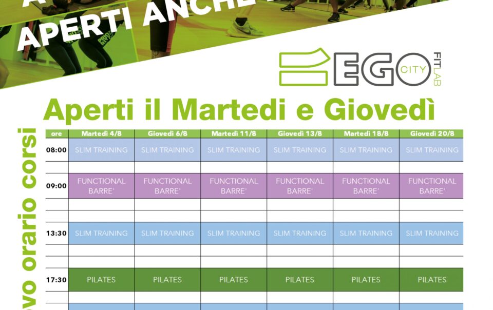 L’ESERCIZIO FISICO NON VA IN VACANZA A grande richiesta Ego City Fit Lab sarà straordinariamente aperto anche in agosto!...