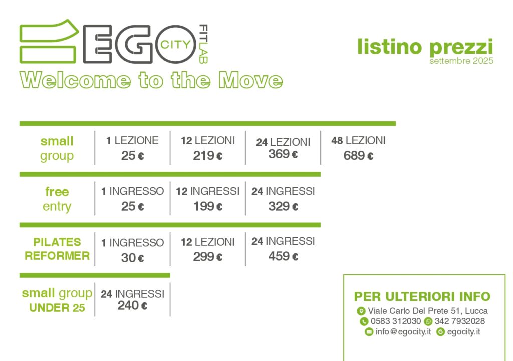 Vivi Ego, prova gratuitamente il nostro centro.Ingresso gratuito valido solo per i residenti nel comune di Lucca.